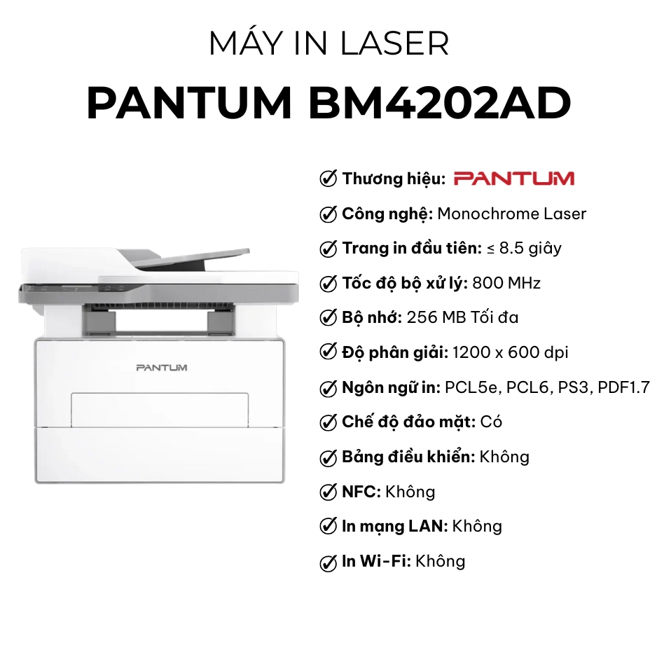 Máy in Pantum BM4202AD là lựa chọn đáng tin cậy cho nhu cầu in ấn chuyên nghiệp, việc sử dụng một thiết bị đa năng giúp tiết kiệm chi phí đầu tư so với việc mua nhiều thiết bị riêng lẻ. Giúp mang lại hiệu suất cao và chi phí vận hành hợp lý. Liên hệ DanhShop qua số HOTLINE: 0352 333 717 để được tư vấn và mua hàng nhanh chóng.