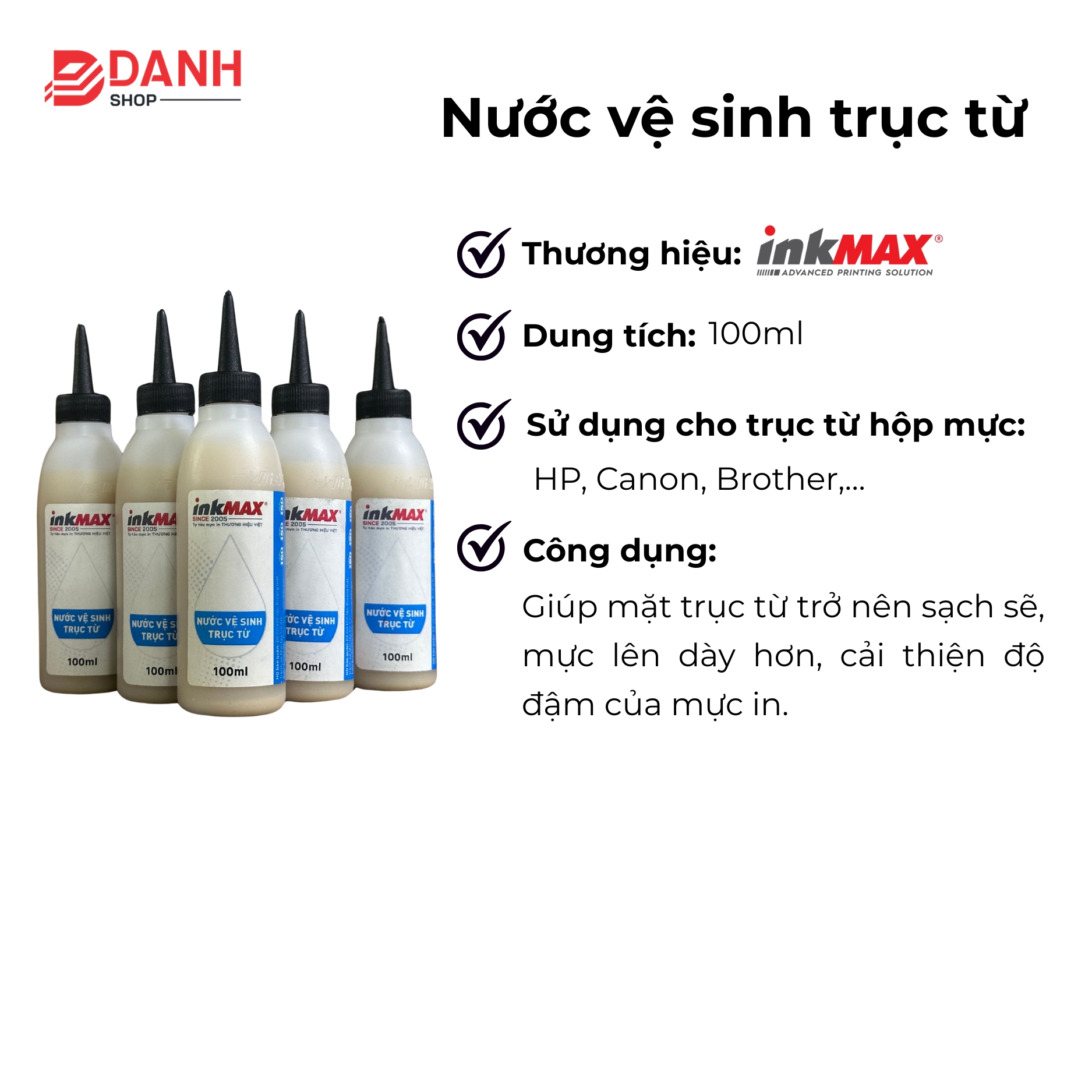 Đặc biệt, nước vệ sinh trục từ của DanhShop được chế tạo an toàn, không gây hại cho máy in và có thể sử dụng cho mọi loại máy in phổ biến trên thị trường.